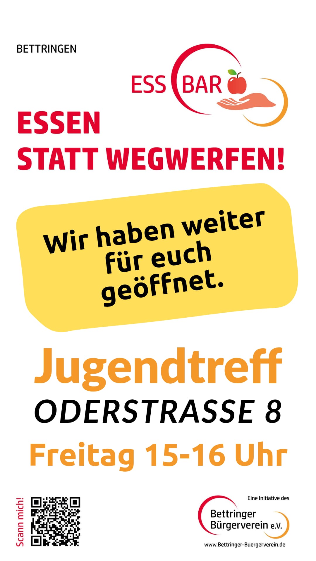 Es ist dem Bettringer Bürgerverein e. V. äußerst wichtig darauf hinzuweisen, dass die geretteten Produkte allen Bettringer Bürgerinnen und Bürgern zur Verfügung stehen werden. Im Vordergrund steht der wertschätzende Umgang mit Lebensmittel und die Möglichkeit diese Produkte vor der Vernichtung zu bewahren. Gemeinsam Lebensmittel retten.